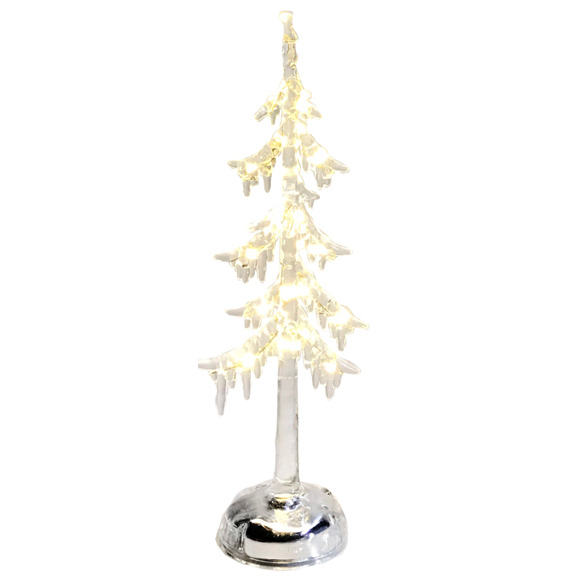Albero che sembra scolpito nel ghiaccio con luci a led. Funziona con batterie o trasformatore non inclusi.