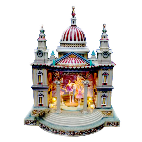 Teatro con all’interno scena dello Schiaccianoci. Scena con musica, luci e movimento. Funziona con batterie o trasformatore non inclusi.